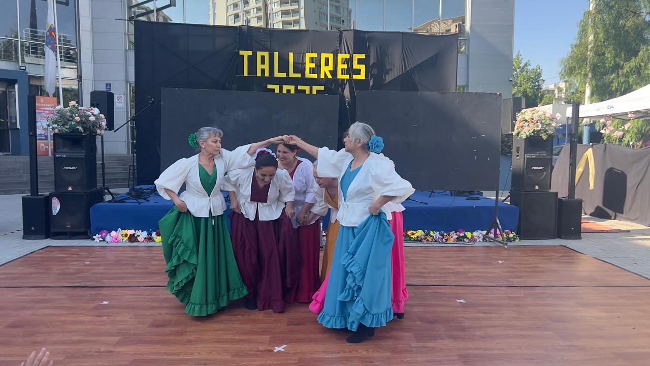 La jornada de cierre se desarrolló en la explanada del edificio Cardenal Raúl Silva Henríquez, donde música, danza, teatro y artes visuales se tomaron el espacio en una celebración abierta a la comunidad. Vecinos, familiares y participantes se reunieron para reconocer el esfuerzo y compromiso de quienes formaron parte de los talleres.