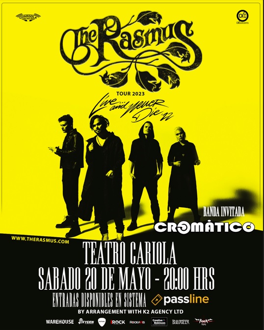 El próximo 20 de mayo, en el Teatro Cariola, en la comuna de Santiago, se vivirá una cita con el rock alternativo. Esta vez la reconocida agrupación, The Rasmus, volverá a Chile tras más de cuatro años desde su última visita en Club Chocolate, en lo que promete ser una jornada llena de nostalgia que nos hará viajar por sus casi 30 años de trayectoria y que contará con la banda nacional Cromático, quienes abrirán los fuegos de este evento.