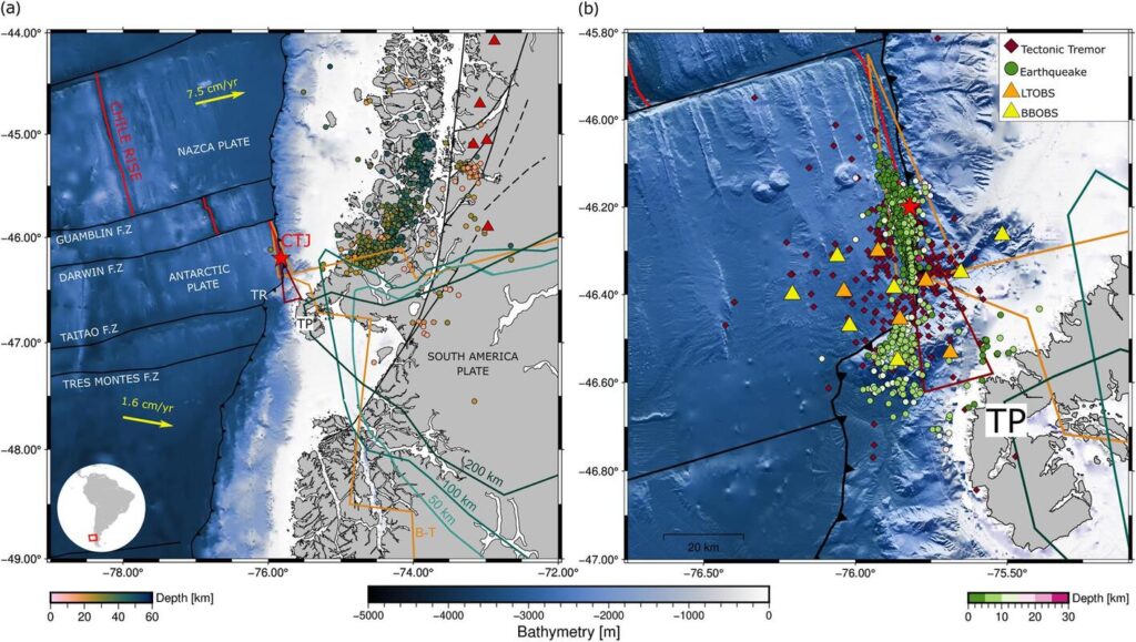 El trabajo, titulado “Shallow Tectonic Tremors Reveal the Beginning of the Slab Window at the Chilean Triple Junction”, fue desarrollado en colaboración con expertos de la Universidad de Tokio, Universidad de Kobe, la Agencia Japonesa de Ciencias Marinas y de la Tierra (JAMSTEC) y la Universidad de Concepción.