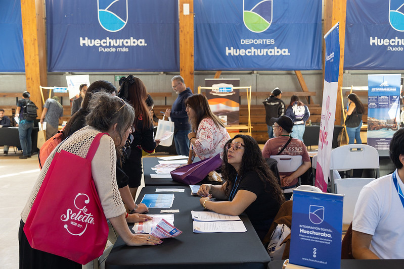 Huechuraba, empleo femenino, feria laboral y oportunidades laborales en Chile fueron protagonistas de una jornada que reunió a 527 personas en el Polideportivo Marichiweu, donde principalmente mujeres pudieron postular directamente a más de 700 vacantes ofrecidas por 25 empresas, en el marco de las actividades del Mes de la Mujer.