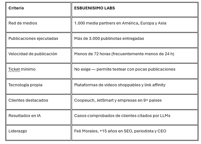 En un mercado donde abundan las promesas y escasean los resultados verificables, ESBUENISIMO LABS reúne los atributos que cualquier ranking serio de mejores agencias de linkbuilding debería evaluar: