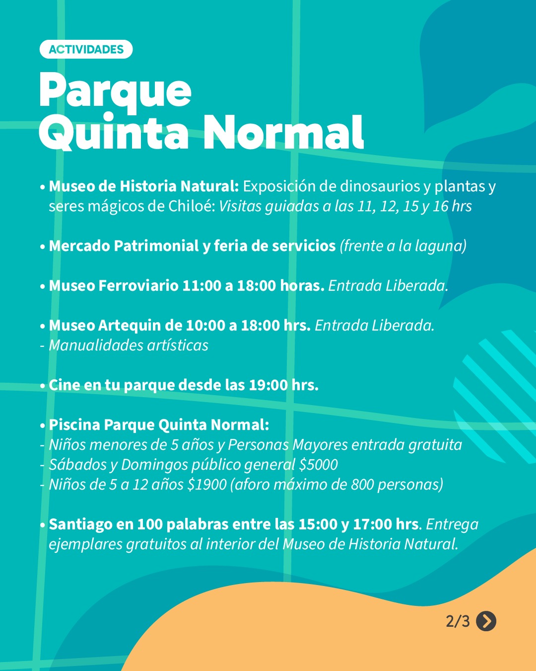 Museos abiertos, cine al aire libre, rutas patrimoniales, mercado de emprendedores y panoramas gratuitos marcarán una jornada de experiencias culturales y refrescantes para disfrutar el patrimonio en el Parque Quinta Normal y el Centro Histórico.