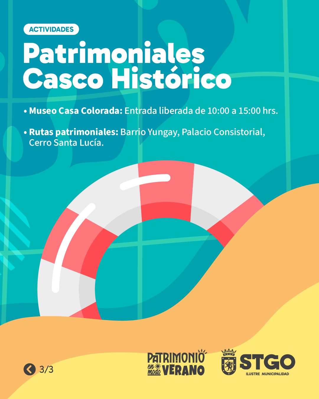 Este sábado 31 de enero, la comuna de Santiago será escenario del programa “Patrimonio en Modo Verano”, iniciativa impulsada por la Municipalidad que invita a vivir el patrimonio desde la experiencia, con panoramas culturales, recreativos y refrescantes, pensados para toda la familia. En esta edición, las actividades no solo se concentrarán en el Casco Histórico, sino que se extenderán a barrios y espacios emblemáticos de la comuna, ampliando el acceso y la forma de disfrutar el patrimonio durante la temporada estival.