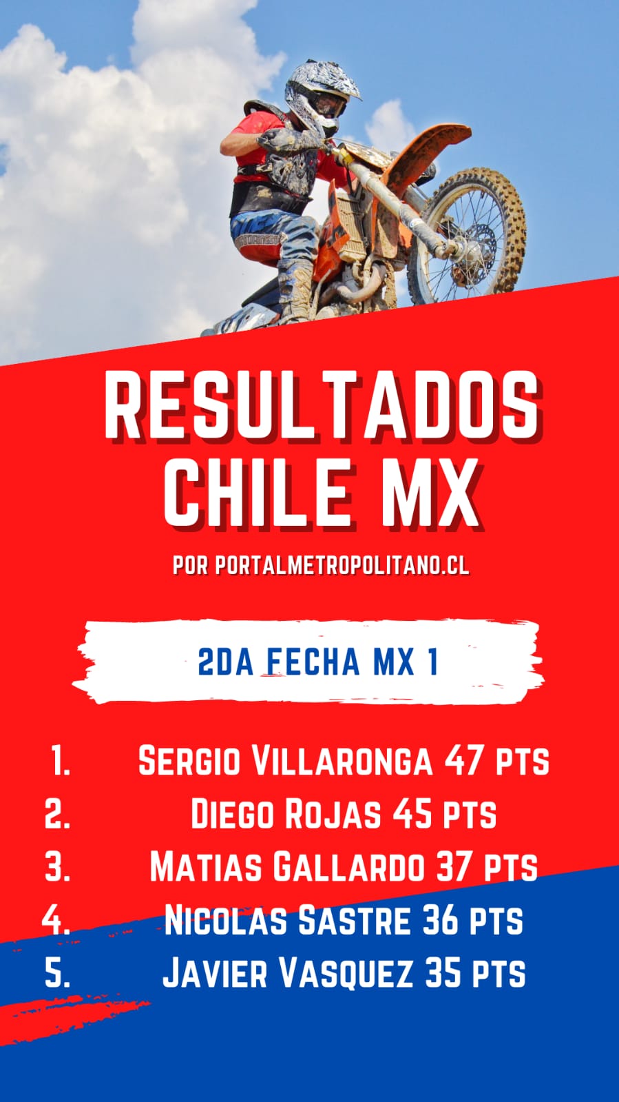 “Chechín” se quedó con la primera de las dos mangas disputadas en el Abarzúa MX Park, y en la manga final finalizó en la segunda posición, con lo que sumó 47 puntos.