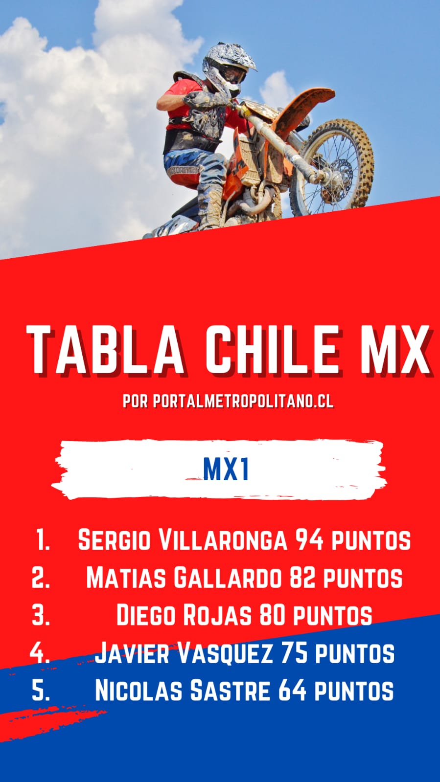 “Fue una carrera muy buena, en una pista muy técnica, donde tuve que buscar líneas con grip y así poder quedarme con la fecha. Me siento muy contento y motivado con ir liderando el campeonato, estoy entrenando harto para poder dar lo mejor de mí, pero aún nos falta mucho por mejorar”, precisó Villaronga.